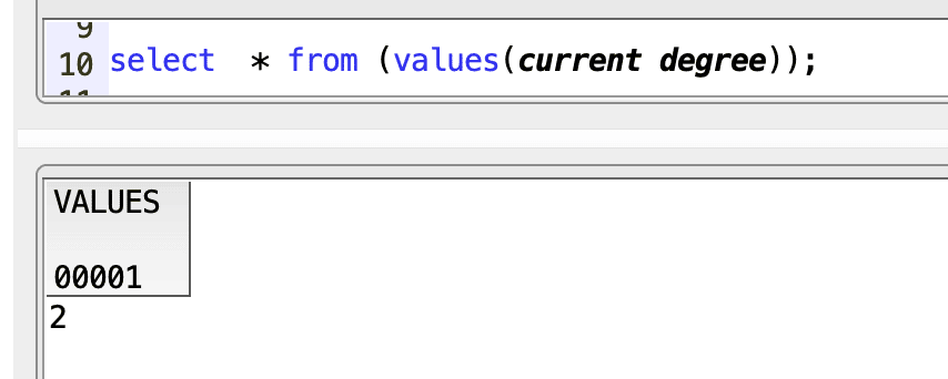 set current degree=’2′; - When execute the CPYTOIMPF command: