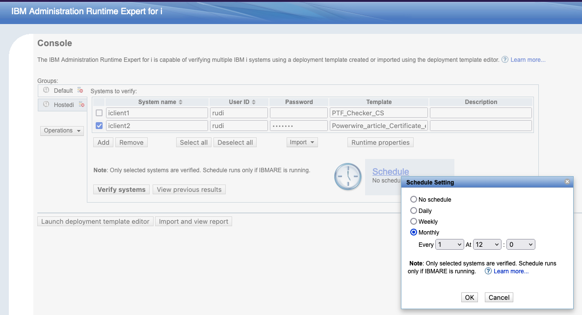 The console of ARE also has the option to Schedule tasks. For this ARE needs to running but the start of ARE can be configured here in the Web Administration for i, again IBM has already defined a bookmark for this: