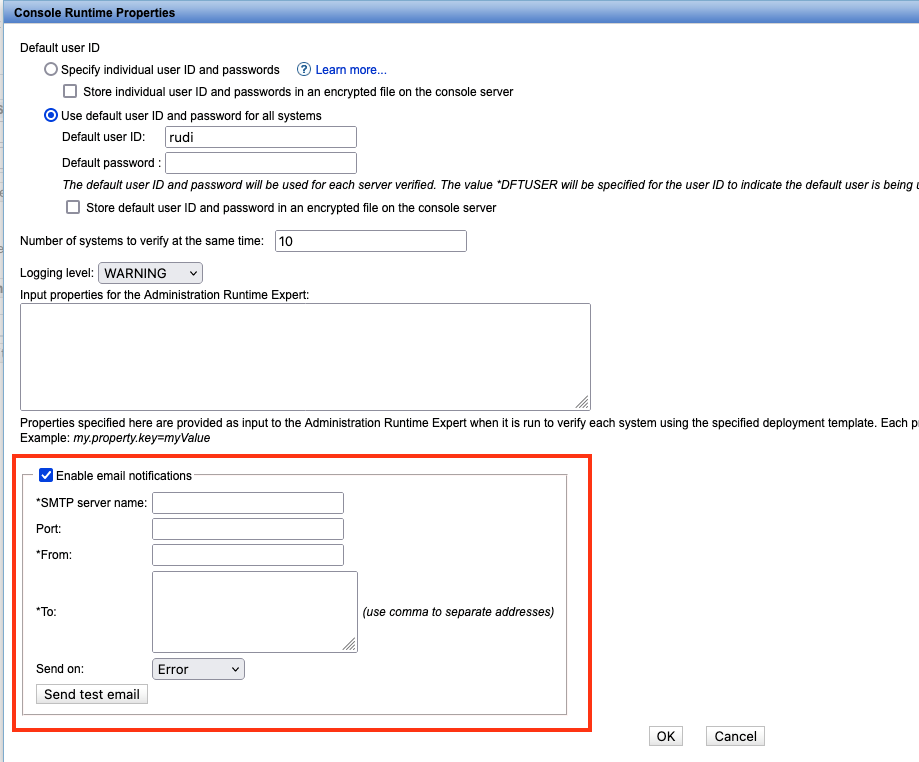 ARE has the option to define an SMTP server, which can be configured after selecting the “Console Runtime Properties” as shown below: