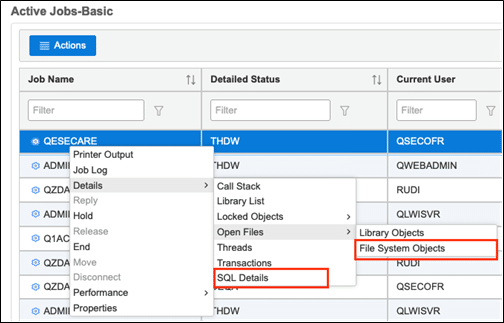Please notice that the joblog is sorted in descending order. When refreshing to see the latest data of the joblog this order has its advantages. One of the biggest of this interface is that you have access to information beyond the WRKACTJOB command. When jobs are using the Integrated File System (IFS) in Nav4i you have access to which files are in use. When running SQL that information is also available.