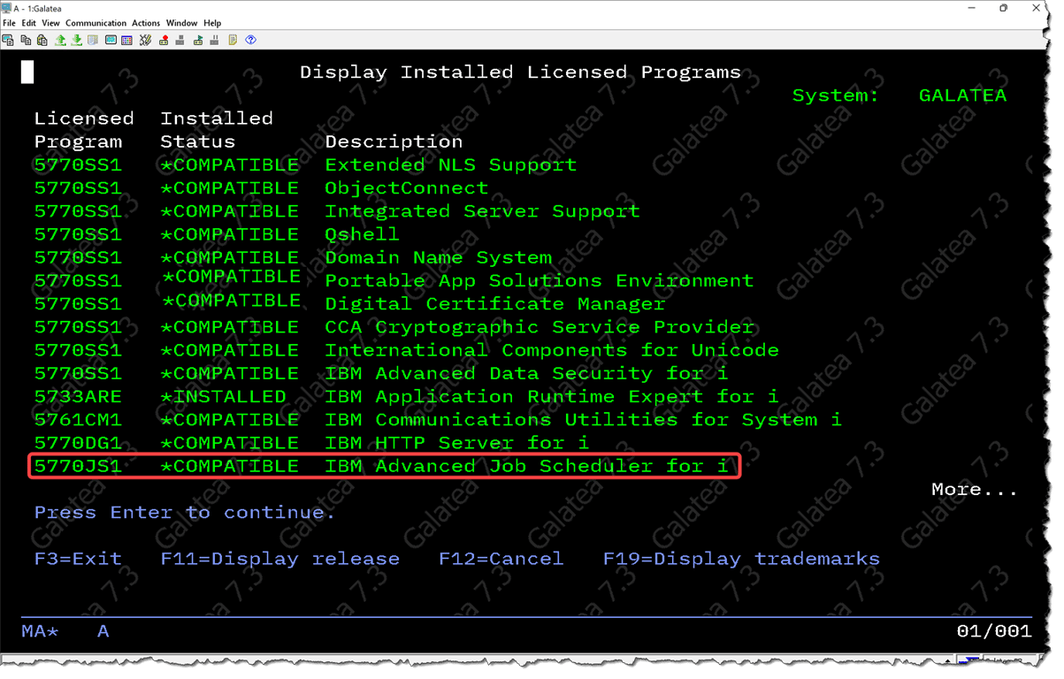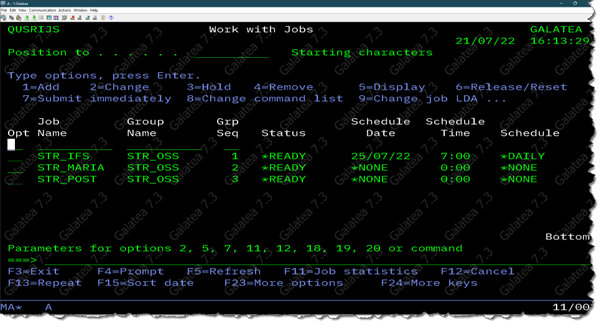 To see the jobs I’ve just added on the 5250 session, we run the command