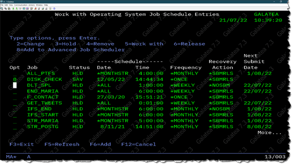 - This is our main entry into the job scheduler, and is the equivalent of the standard job scheduler provided with IBM i