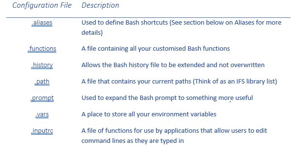 Dotfiles include configuration files for many applications we use in a Bash session.