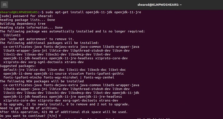 Once this has finished, you can run the command “java -version” to confirm that the install was successful.