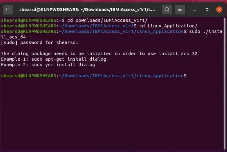 At this stage if you try to run the install script in a terminal window you will get prompted to install the dialog package if you don’t already have it: