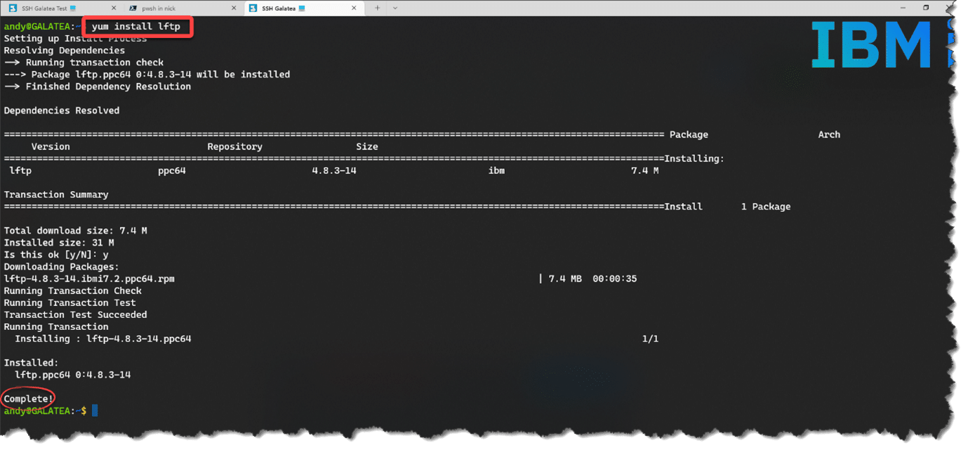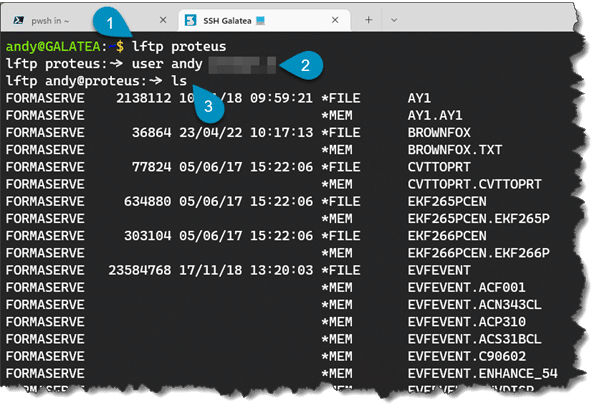 - Lftp to another of our IBM i partition, Proteus