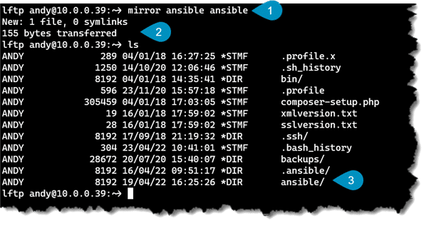Once we are in the lftp session, we then use all the normal ftp commands, put, get, etc.