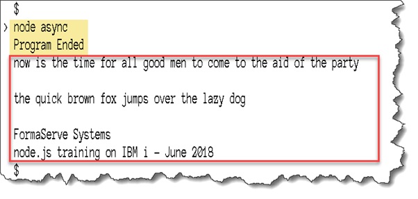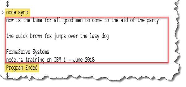 Functionally, this program is very similar to the sync example above. It prints out the contents of a text file.