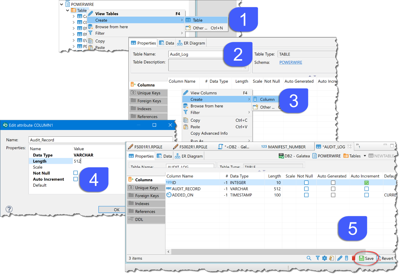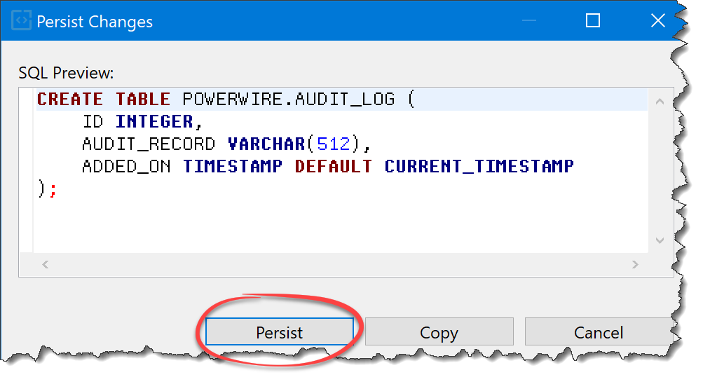 Once the Save button is pressed, a summary will be displayed prior to creating the table.