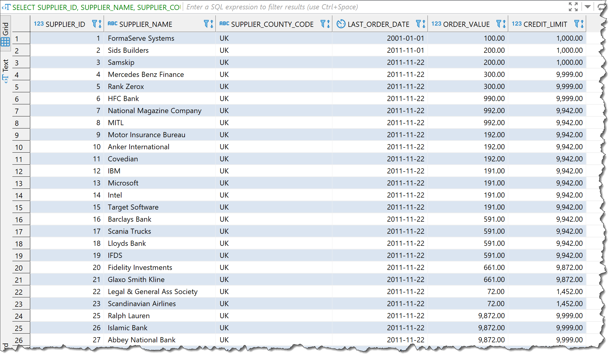 A very useful feature is the auto prompting. When we start typing a SQL statement, the beaver will automatically show us the columns and their attributes. Stops some of my typos!