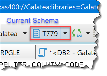 Look for the toolbar option to set the current schema, as shown obove. It even provides a drop-down list of all schemas on our box.